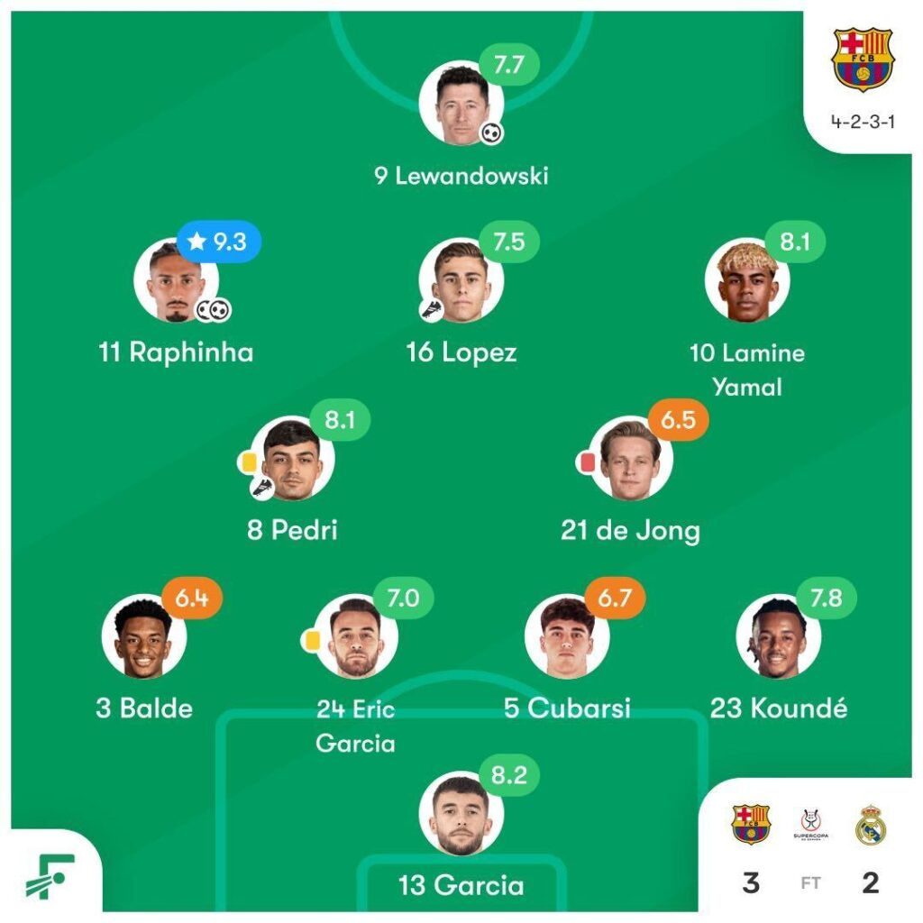 O Barcelona tem um dos ataques mais temidos do futebol europeu, e a La Real precisa ficar atenta a diversas armas, incluindo Lamine Yamal, que marcou contra o Racing na Copa do Rei na quinta-feira.