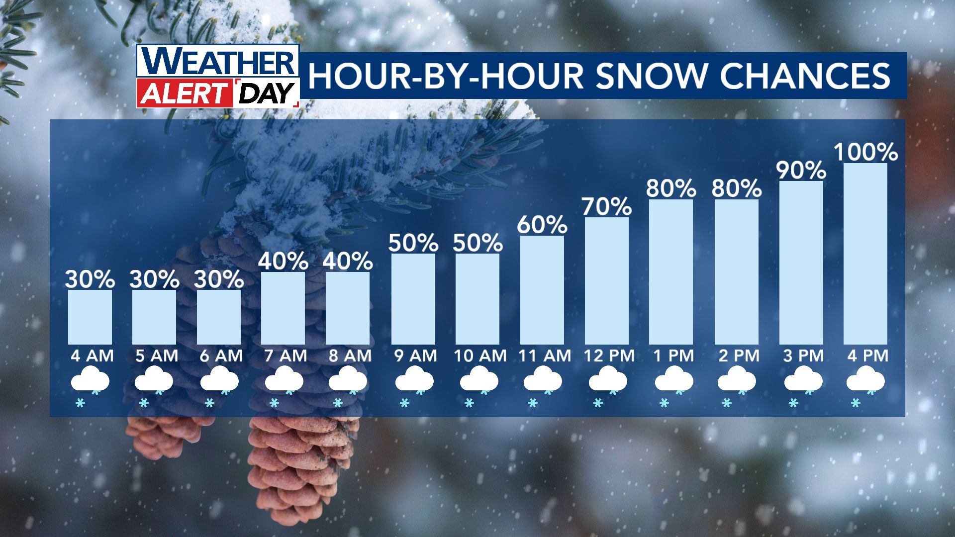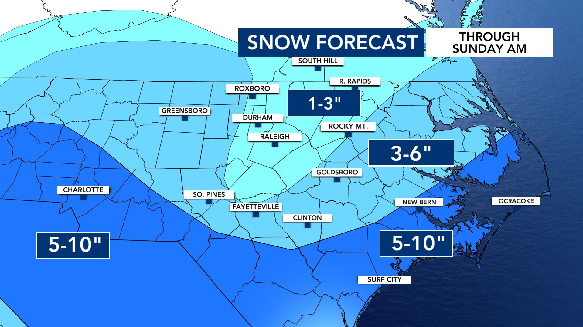 “Overnight, we will see some patchy areas of light snow,” WRAL meteorologist Kat Campbell said. “The heavier stuff is likely to come Saturday afternoon into Saturday night.”