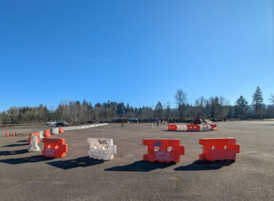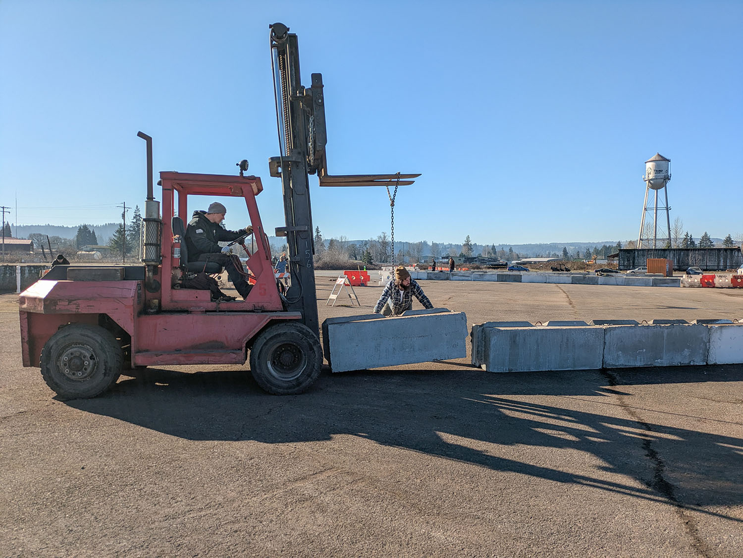 Using a forklift, Iliff maneuvered large concrete barriers around the lot that has been termed The Mill Drift Track (find it on Facebook), a five-acre spot on the old mill property at the north end of 24th Avenue.