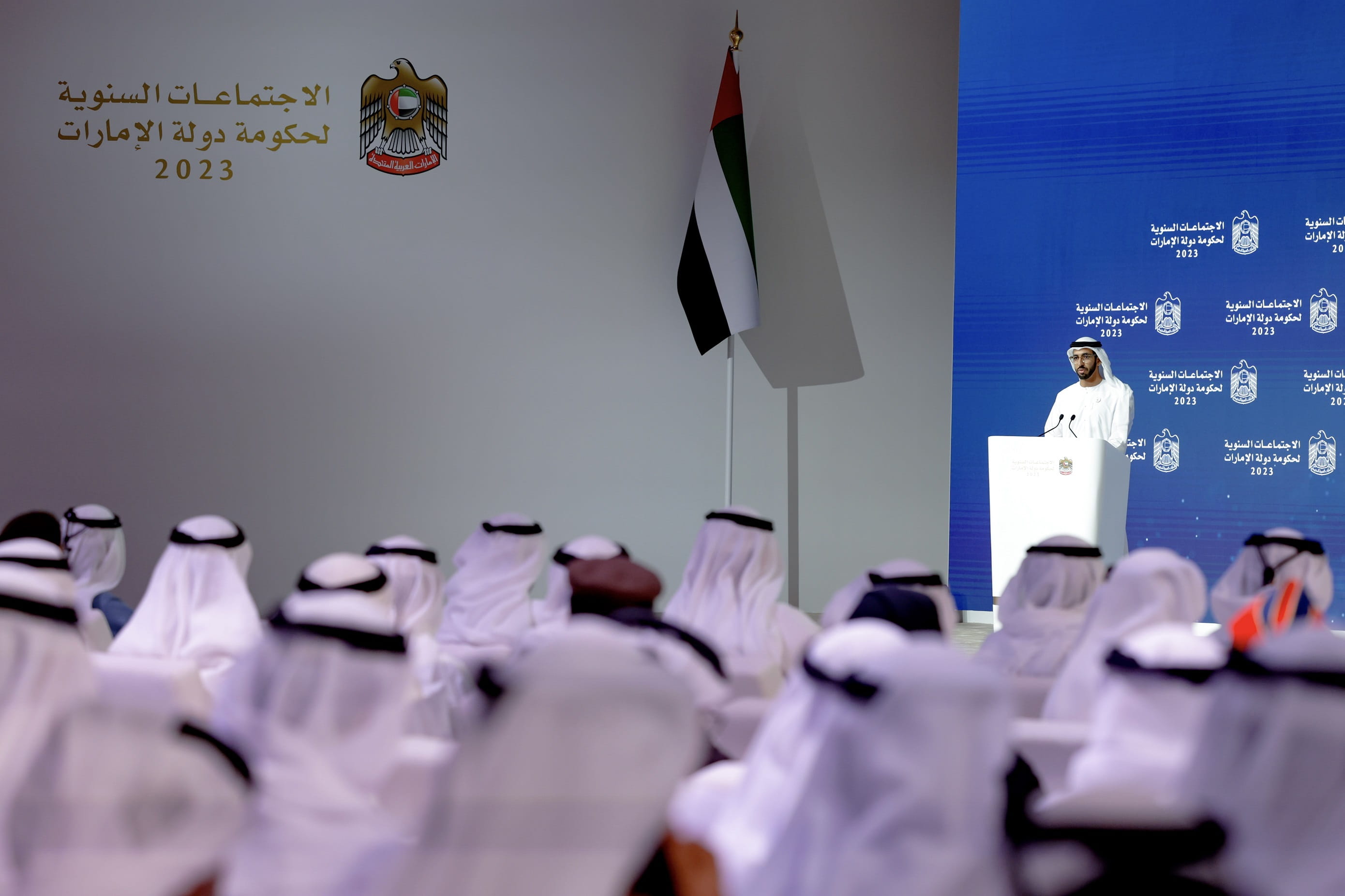 His Highness Sheikh Mohammed affirmed that the UAE Government Annual Meetings epitomise the vision of President His Highness Sheikh Mohamed bin Zayed Al Nahyan to boost the national work ecosystem and lay the foundations of the UAE’s development vision to serve the interests of the country and its people.