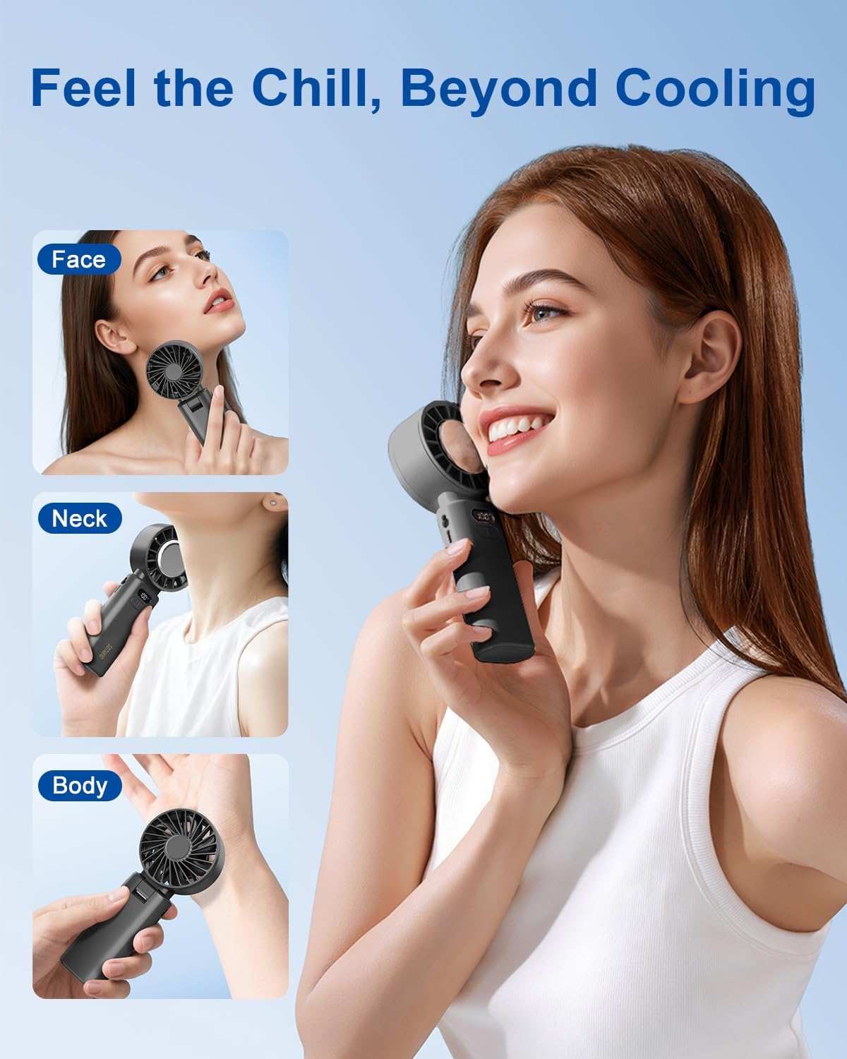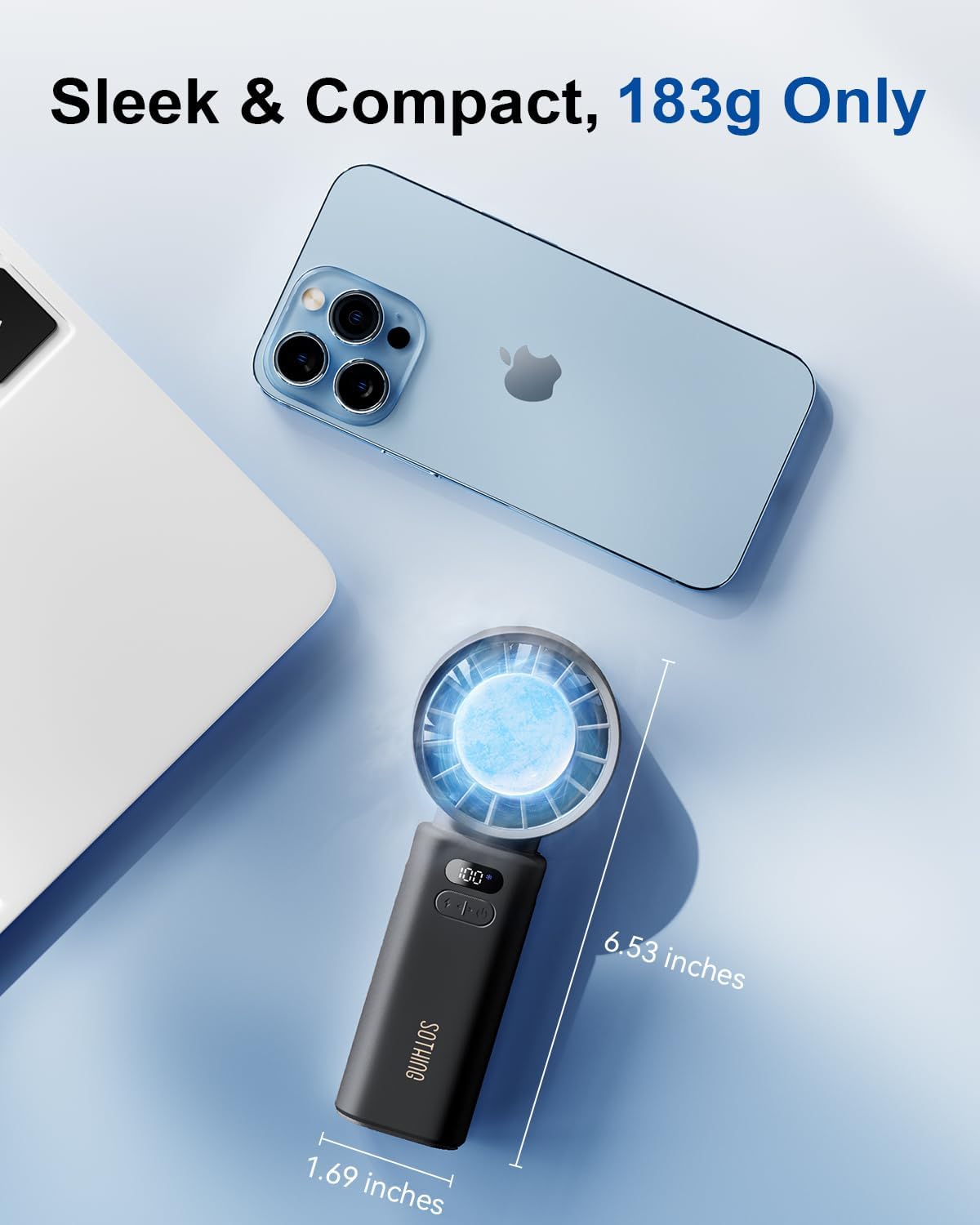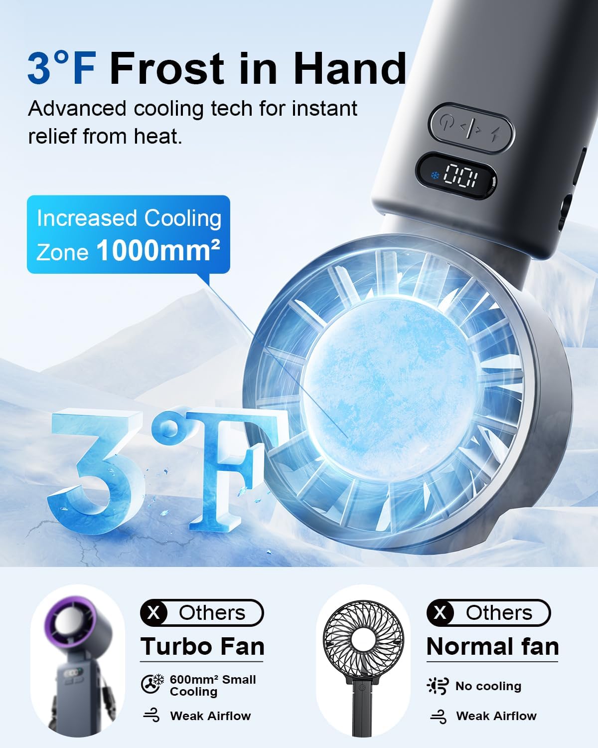 Turbo Fan Handheld Power – Experience exceptional wind performance with 10000RPM speed and a max airflow of 27ft/s, making it one of the most powerful handheld portable fans on the market.