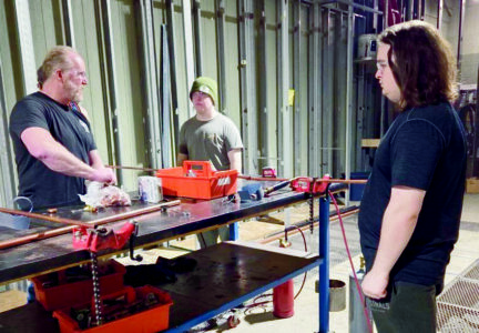 - Union Training Coordinator Rick Boyarko shows John and Alex Ketchum how to seal pipes at the Boardman facility. (Submitted photo)