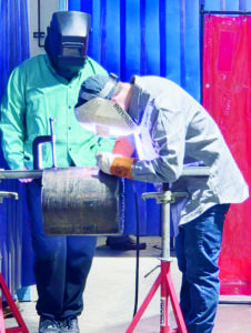 Clinton Greaver is with a union apprentice teaching him welding techniques at the Boardman facility. (Submitted photo)